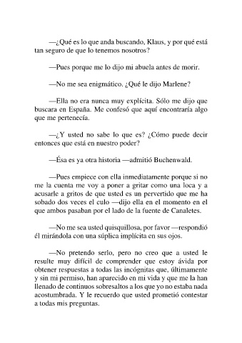 —No me sea enigmático. ¿Qué le dijo Marlene?